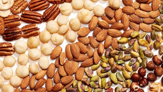 Eating nuts helps your heart. Discover how walnuts, almonds and other nuts can help lower your cholesterol when eaten as part of a balanced diet. Eating nuts as part of a healthy diet may be good for your heart. Nuts contain unsaturated fatty acids and other nutrients.
